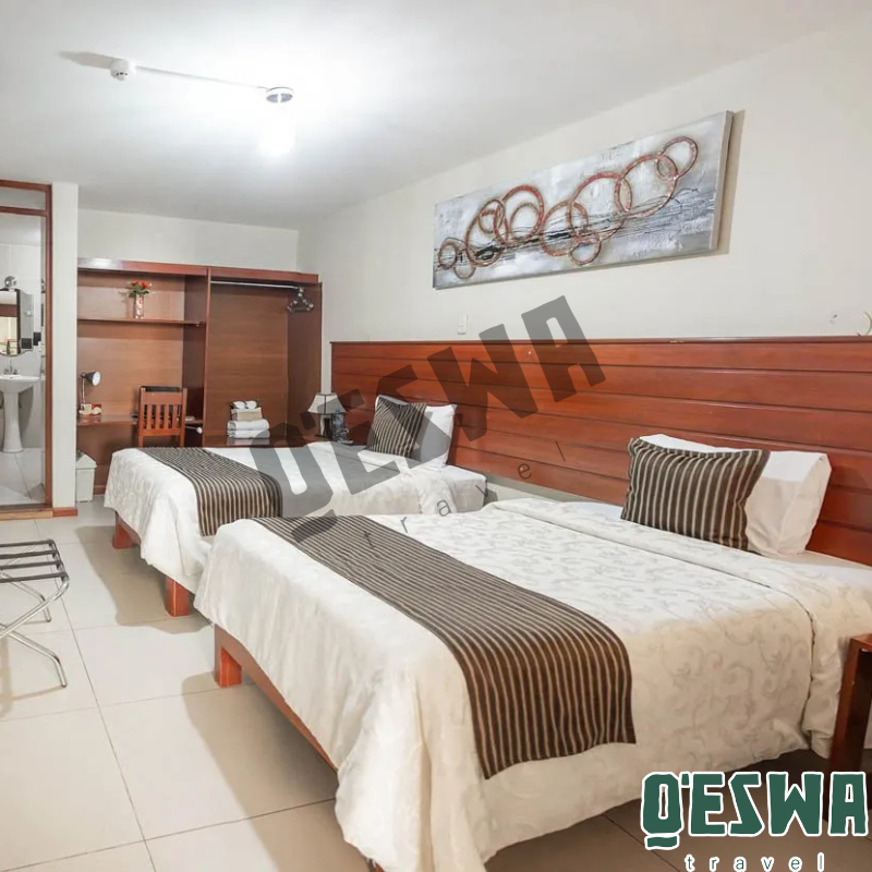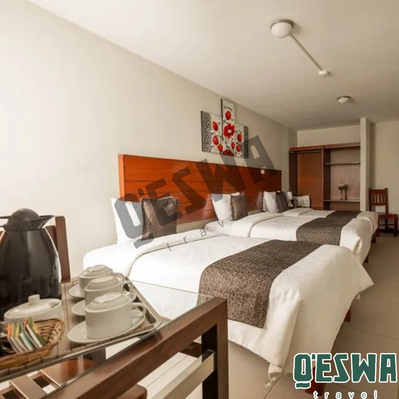 La cama triple en Qeswa Travel ofrece una solución perfecta para grupos pequeños o familias que buscan compartir una habitación sin sacrificar comodidad. Este espacio está diseñado para alojar cómodamente a tres personas, con camas individuales dispuestas de manera que cada huésped disfrute de su propio espacio personal.